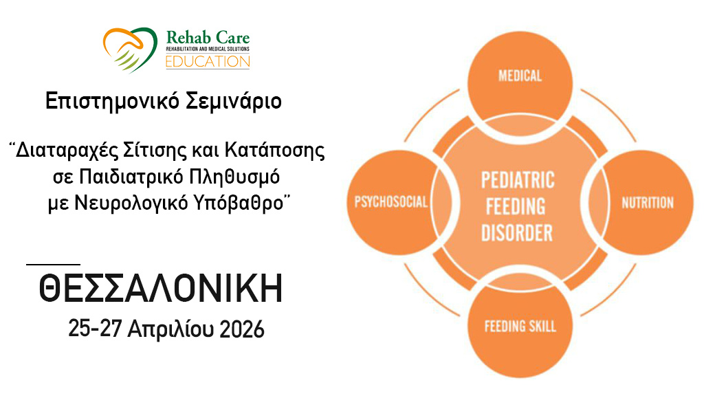 Το τμήμα εκπαίδευσης της RehabCare σε συνεργασία με το Πρότυπο Παιδιατρικό Θεραπευτήριο ‘’Νόημα’’ διοργανώνει επιστημονικό σεμινάριο με θέμα “Διαταραχές Σίτισης και Κατάποσης σε Παιδιατρικό Πληθυσμό με Νευρολογικό Υπόβαθρο”. Το φαγητό είναι μια αισθητηριακή λειτουργία ζωτικής σημασίας. Η ασφάλεια, η ποιότητα και η απόλαυση αυτής της λειτουργίας προάγει τη γενική υγεία του παιδιού καθώς και άλλες εξίσου σημαντικές λειτουργίες. Παιδιά με νευρολογικές διαταραχές εμφανίζουν πολύ συχνά ζητήματα σε κάποιο από τα στάδια της κατάποσης, καθιστώντας τη διαδικασία των γευμάτων ως το πιο δύσκολο καθημερινό έργο για εκείνα και τους γονείς τους. Η παρέμβαση του εξειδικευμένου λογοθεραπευτή κρίνεται απαραίτητο, όπως και η συνεργασία με την ομάδα αποκατάστασης.